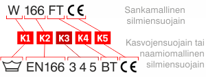 - Yleensä ei ole muita merkintöjä. Muut merkinnät eivät kuulu EN 166.
