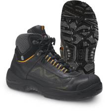 JALAS® 3498 Highlight, Turvasaapas, naulaanastumissuojan materiaali plasmakäsitelty komposiitti (PTC), varvassuojan materiaali alumiini, muovilenkkituki, PU-ulkopohja, päällismateriaali PU-pintainen nahka, tekstiili