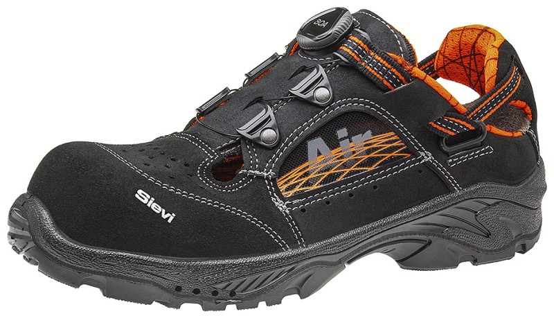 Teräksisellä naulaanastumissuojalla varustetut sandaalit, joiden SieviAir®-pohjaratkaisu parantaa tehokkaasti jalkineiden ilmanvaihtoa ja käyttömukavuutta. 3D-dry®-vuori lisää hengittävyyttä siirtämällä kosteutta pois jalan pinnasta. Päällinen on haljasta ja mikrokuitua. Polyuretaanipohja on pitävä ja joustava ja kestää öljyä ja useita kemikaaleja. ESD.