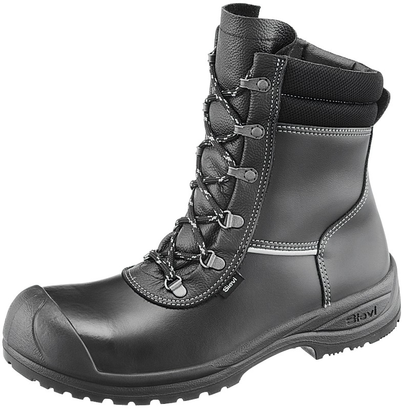 Kestävät saappaat teräksisellä varvas- ja naulaanastumissuojalla. Päällisnahka pitää hyvin muotonsa ja hylkii vettä. Sivussa heijastin. 3D-dry®-vuori hengittää pitäen jalat kuivempina. Muotoiltu huopapohjallinen lisää käyttömukavuutta. Käännetty vetoketju on kestävä ja estää lian pääsyä vetoketjuun ja edelleen jalkineeseen. Laaja XL-lesti. Joustava ja pakkasessakin hyvin pitävä FlexStep®-pohja.