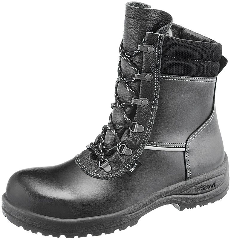 Kestävät saappaat teräksisellä varvassuojalla. Päällisnahka pitää hyvin muotonsa ja hylkii vettä. Sivussa heijastin. Lämmin teddyvuori yhdessä alumiinihuopapohjallisen kanssa pitää jalat lämpiminä. Käännetty vetoketju on perinteistä kestävämpi ja estää lian pääsyä vetoketjuun ja edelleen jalkineeseen. Laaja XL-lesti. Joustava ja pakkasessakin hyvin pitävä FlexStep®-pohja.