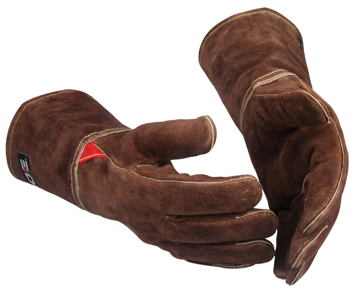 Tämä kestävä, pidempi mallinen hitsauskäsine on valmistettu erikoiskäsitellystä haljasnahasta, joka on vettä ja öljyä hylkivä. Materiaali kestää lämpöä ja suojaa sekä kipinöiltä, että liekeiltä. Kaikki saumat on ommeltu lämmönkestävällä kevlar ompeleella. Käsine on vuorattu puuvillavuorella.