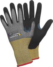 TEGERA® 8811 Infinity, Viiltosuojakäsine, nitriilivaahto/aqua PU, kämmenestä pinnoitettu, CRF®-tekniikka, lasikuitu, nailon, spandex, 15 gg, karhennettu vaahto, viiltosuojaluokka D, Cat. II, kestää kosketuslämpöä jopa 100°C saakka, anatomisesti muotoiltu,