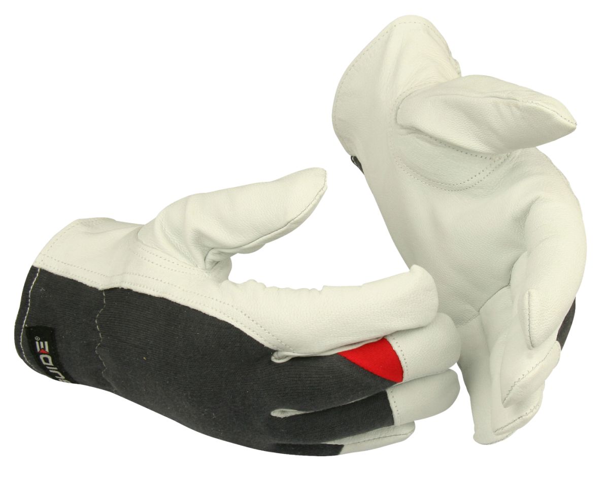 Kulutusta kestävää vuohenpintanahkaa kämmenessä ja etusormessa. Vahvistetut sormenpäät. Hyvä sormituntuma. Kämmenselkä on puuvillaa. Keystone-peukalo. Sopii rakennuksille, teollisuuten sekä varasto-ja pakkaustöihin.