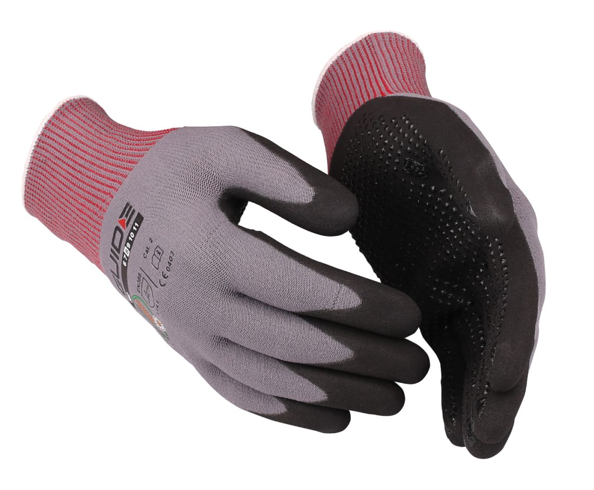 Saumaton nailonneulos mukautuu käteen hyvin ja säilyttää sormituntuman. Ribbineulottu resori. Kämmenessä ja sormenpäissä huokoinen nitriilipinnoite vahvikekuvioinnilla. Hyvä otepito ja kulutuksenkestävyys.Ökotex -hyväksytty. Sopii asennustyöhön ja rakennusteollisuuteen.