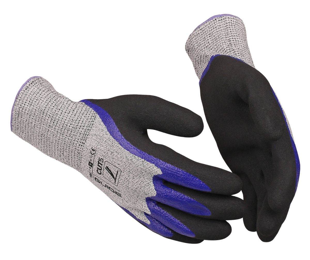 Viiltosuojakäsine nitriilillä Viiltosuojaluokka 5 Saumatonta HPPE-/lasikuitua Nesteenpitävä pinnoite Puolipinnoite ja sormet pinnoitettu