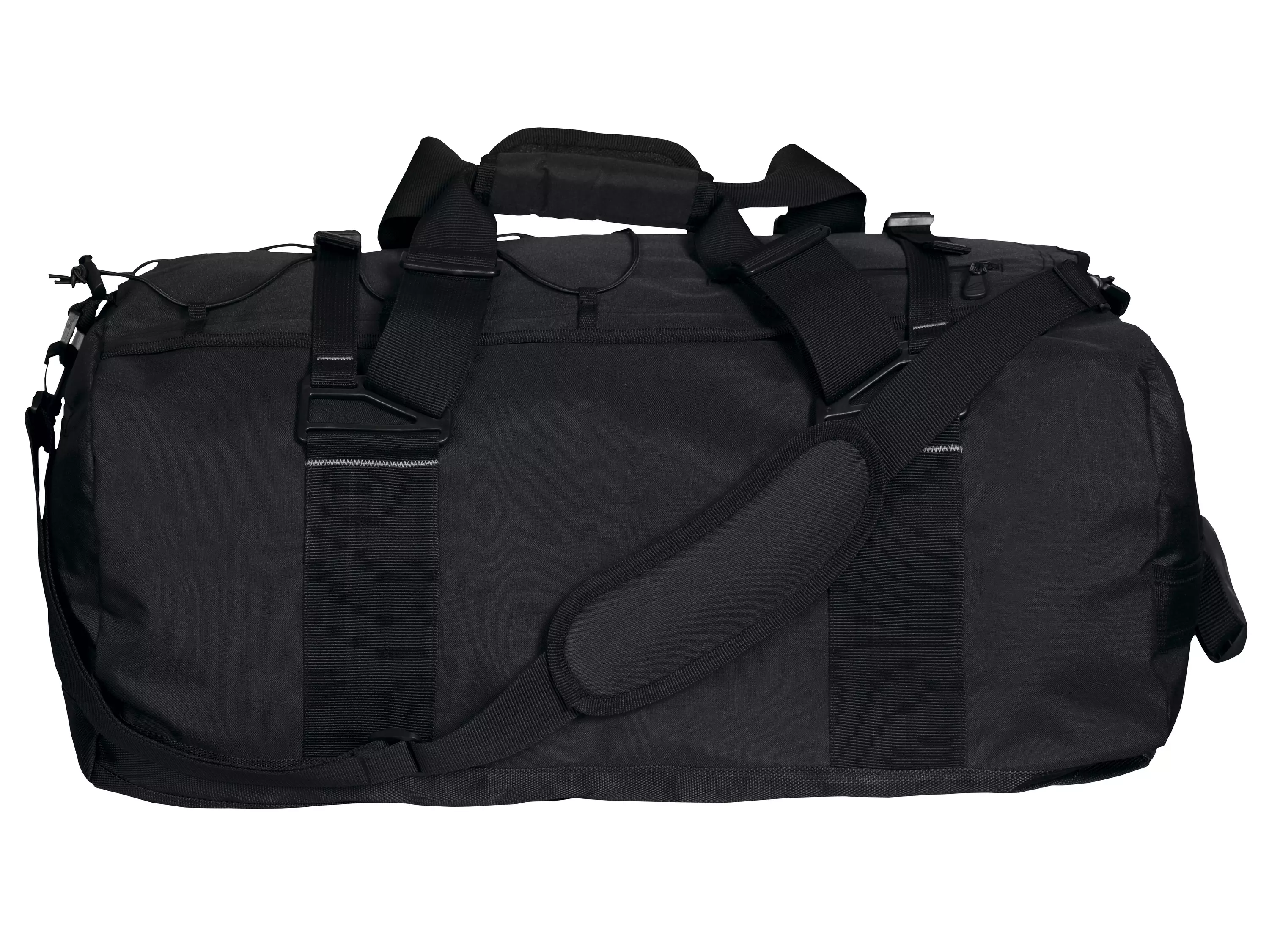Laukun pohja on vahvistettu 1680D-materiaalilla. Laukussa on U-muotoinen läppä, jossa vahva vetoketju. Kantokahva lyhyellä sivulla. Kaksi ulkotaskua, joissa vedenpitävät vetoketjut. Vuoritettu sisäosa ja verkkotasku laukun sisällä. Läpässä kuminauhanyöri lukolla. Mukana ylimääräinen musta kuminauhanyöri. Tilavuus: n. 50 l. Mitat: 60x35x30 cm.