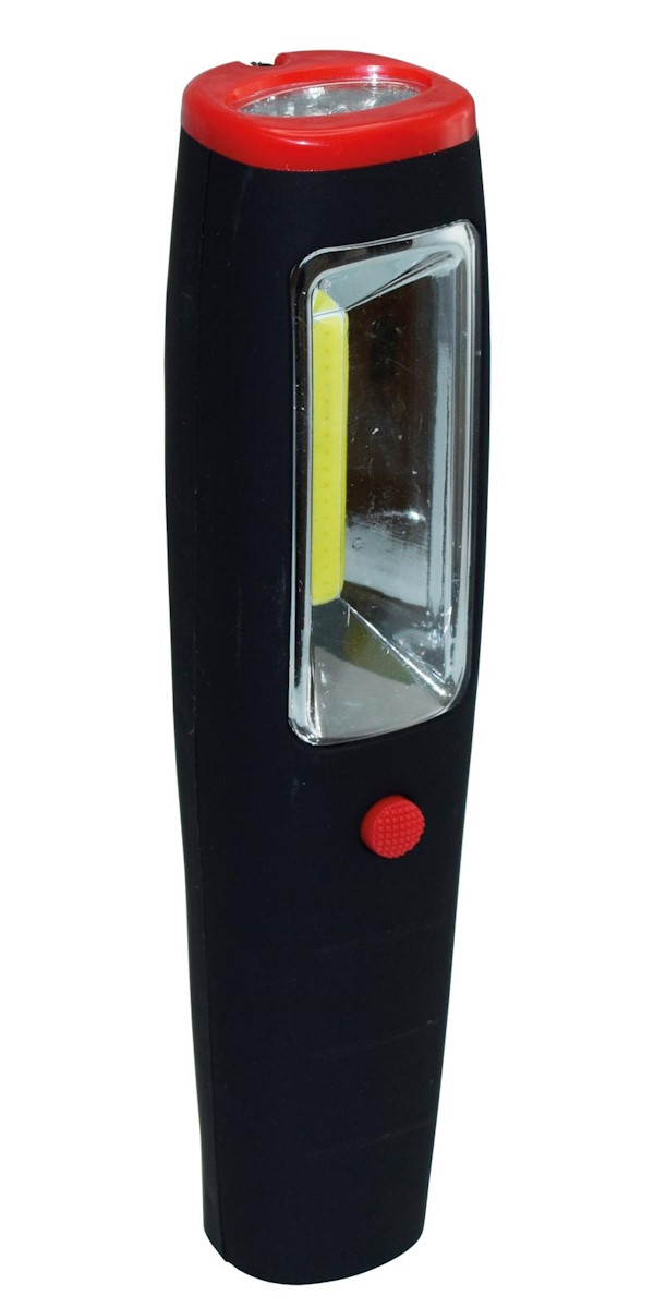 Kumipintainen magneetilla ja ripustuskoukulla varustettu 3 W taskulamppu. Valon määrä 240 lm.