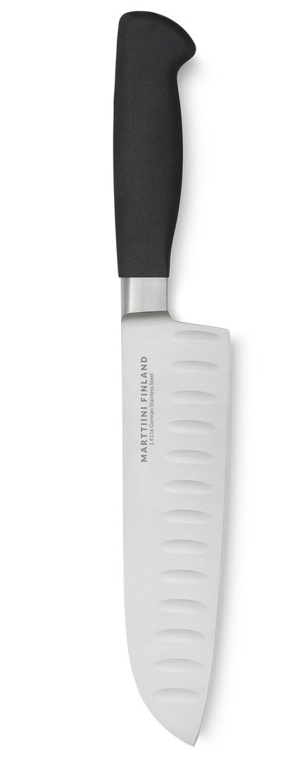 Ergonomisesti muotoiltu kahva on mukava käytössä. Suosittelemme käsinpesua sekä teroitusta Marttiinin teroittimella.