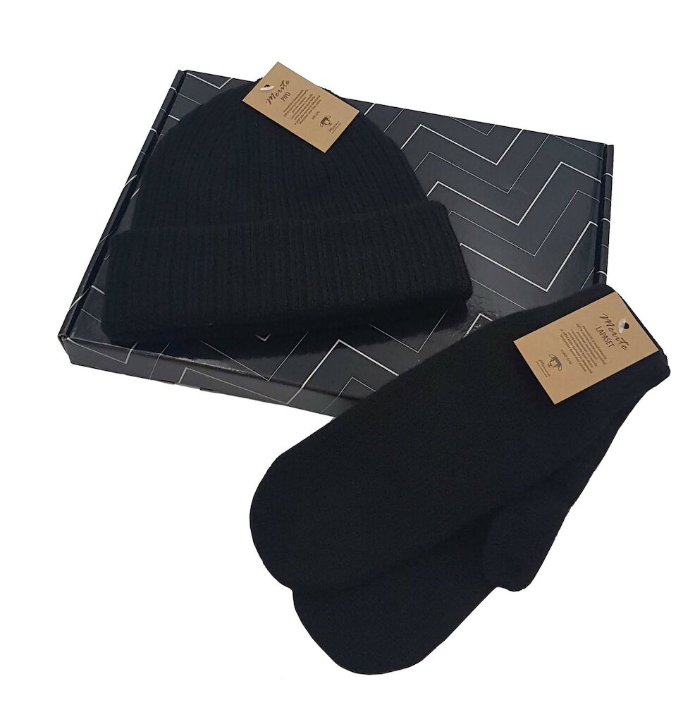 Tämä tyylikäs lahjasetti sopii erinomaisesti sekä naisille että miehille. Lahjapakkaus sisältää tyylikään unisex-mallisen merinovillapipon sekä merinovillaiset lapaset.
