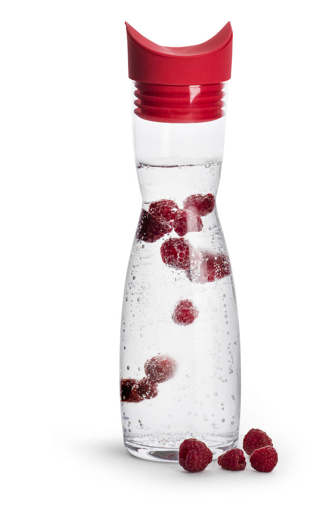 Flip karahvi, punainen Kauniisti muotoillussa karahvissa on nerokas korkki, joka estää jääpalojen putoamisen ja juoman läikkymisen. Tyylikäs ja helppokäyttöinen.