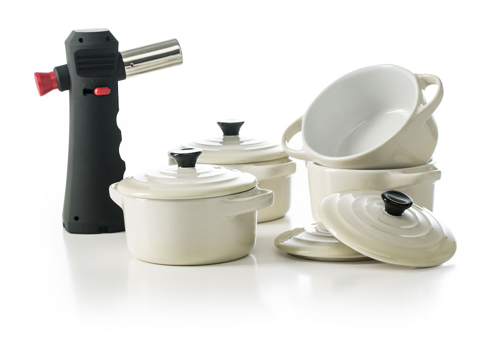 Onnistuneen kokkaamisen salaisuus on hyvät välineet. Tähän settiin kuuluu poltin ruokien liekittämistä varten ja neljä uuninkestävää kannellista annosvuokaa, jotka ovat kivitavaraa. Erinomainen lahja, jossa yhdistyvät toimivuus ja tyyli.
