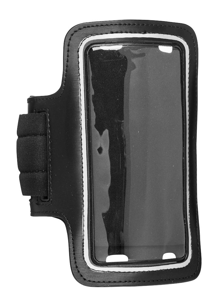 Joustava käsivarsikotelo puhelimelle. Kotelossa on läpinäkyvä ikkuna, jonka kautta puhelinta voi käyttää ottamatta sitä pois suojakotelosta. Joustava, napakasti istuva käsivarsikotelo on valmistettu polyesteristä.