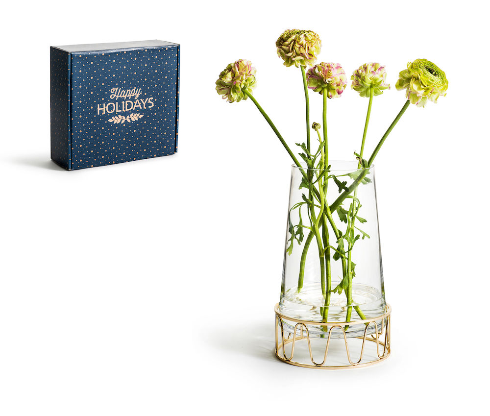 Koristeellinen korkea kynttilälyhty, kullanvärinen alusta ja kaunis lasi. Ylellinen lahjaesine sisältää myös kynttilän.