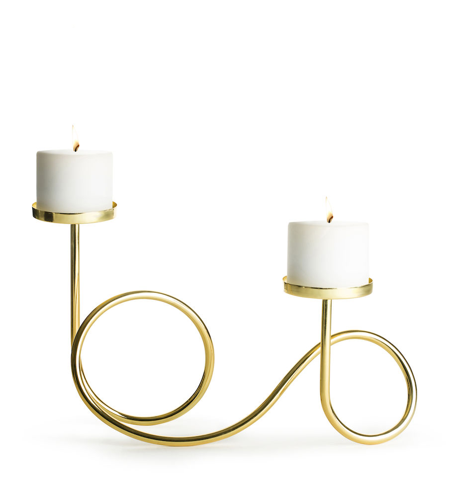 Loop kynttilänjalka Loop on koristeellinen kynttilänjalka kullanväristä metallia. Kynttilänjalan pidikkeet sopivat pöytäkynttilöille. Kulta ja pehmeät muodot luovat kotiin ylellistä ja... Lue lisää