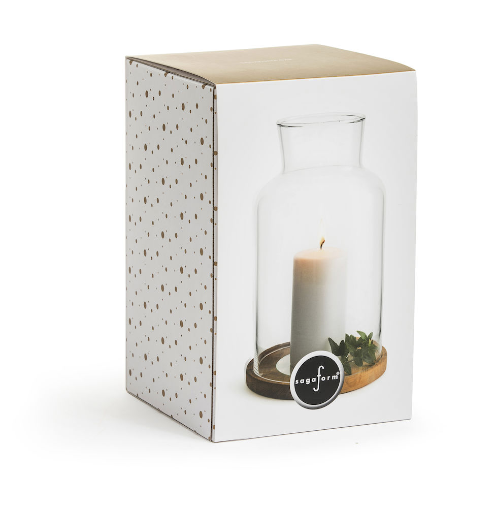 Tunnelmallinen kynttilälyhty pienille pöytäkynttilöille. Alusta on massiivitammea, jonka päällä on lasilevy, jotta voit helposti poistaa steariinivalumat. Kolme kokovaihtoehtoa, jotka näyttävät tyylikkäiltä myös yhdessä. Muista öljytä alusta säännöllisesti. Paketoitu valmiiseen lahjapakettiin. Sisältää kortin ja lahjanarun.