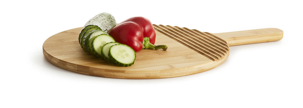 Suuri pyöreä bambusta valmistettu leikkuulauta, jonka on suunnitellut Anton Björsing. Leikkuulaudassa on harkittuja yksityiskohtia, kuten tukeva ja hyvin käteen istuva kädensija ja näyttävät ja käytänno?lliset urat tarjoiluvälineitä varten.