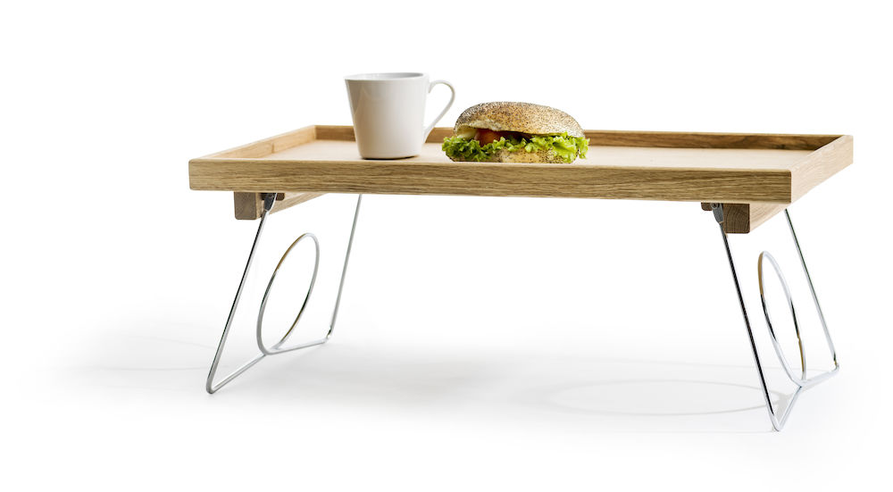 Täydellinen tarjotin pitkiin sängyssä nautittuihin sunnuntaiaamiaisiin. Itse tarjotin on tehty massiivitammesta, ja kokoon taittuvat jalat ovat ruostumatonta terästä. Yllätä rakkaasi! Muista öljytä tarjotin säännöllisesti.