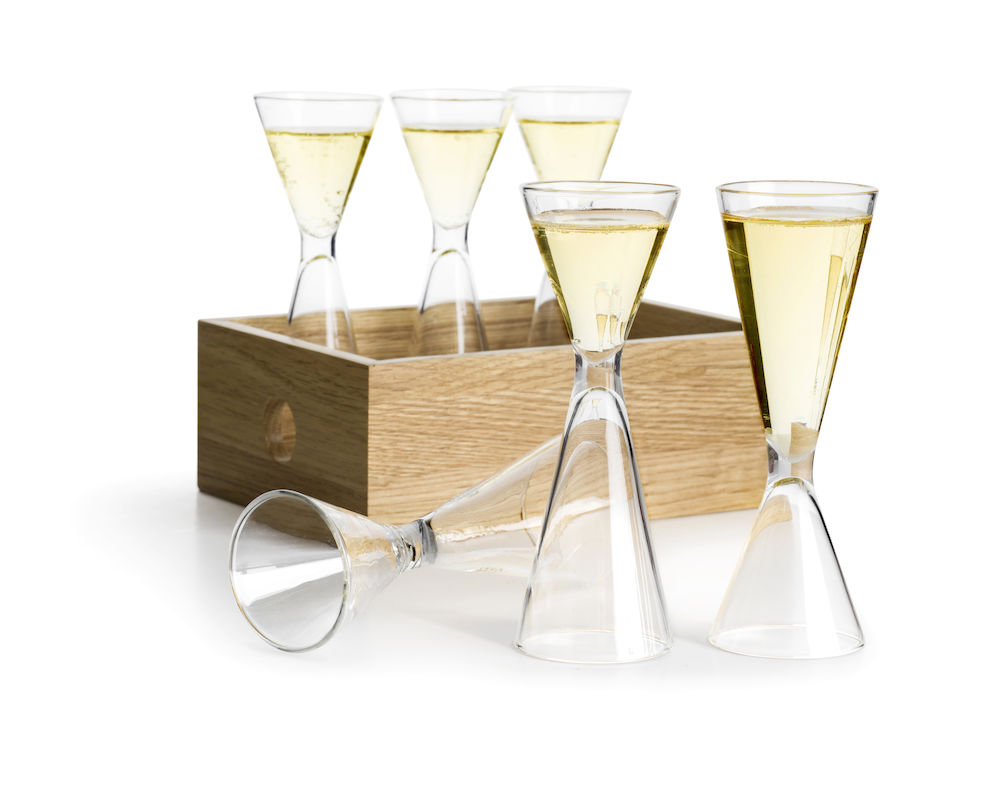 Oak snapsilasit ja säilytyslaatikko, 6 kpl Suupuhallettuja snapsilaseja säilytyslaatikossa. Käännettävistä laseista voidaan juoda kahdenkokoisia snapseja. Sopivat hyvin vieraskäyttöön tai... Lue lisää
