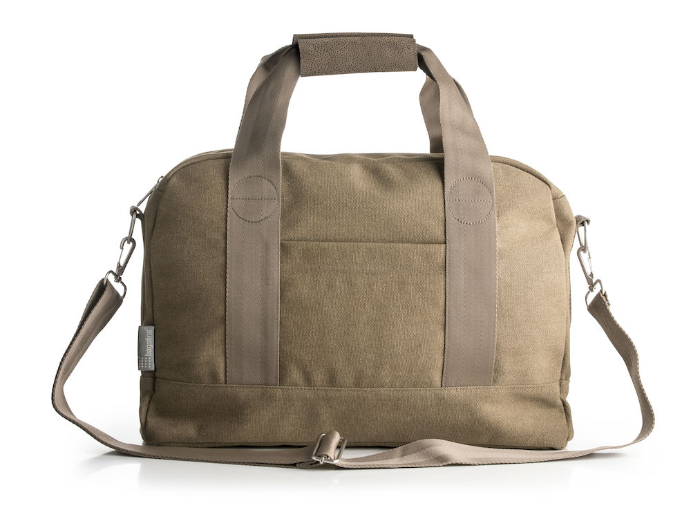 Tyylikäs tietokonelaukku kivipestyä beigeä canvasta. Taskuja ulko- ja sisäpuolella. Erinomainen esimerkiksi töihin tai opiskeluun. Sisältää olkahihnan. Tilavuus 13 litraa.