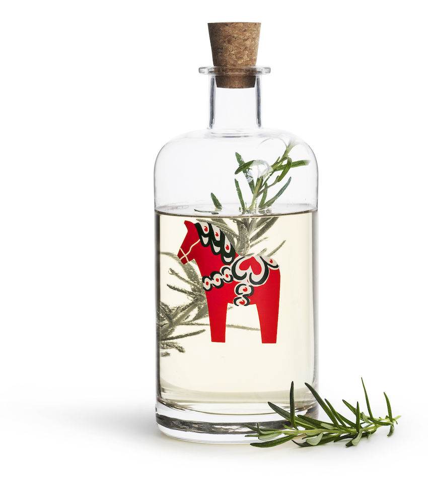 Dalahorse karahvi Lasisessa snapsikarahvissa on kaunis taalainhevoskuvio ja klassinen korkki. Piristää jokaisen kattauksen.