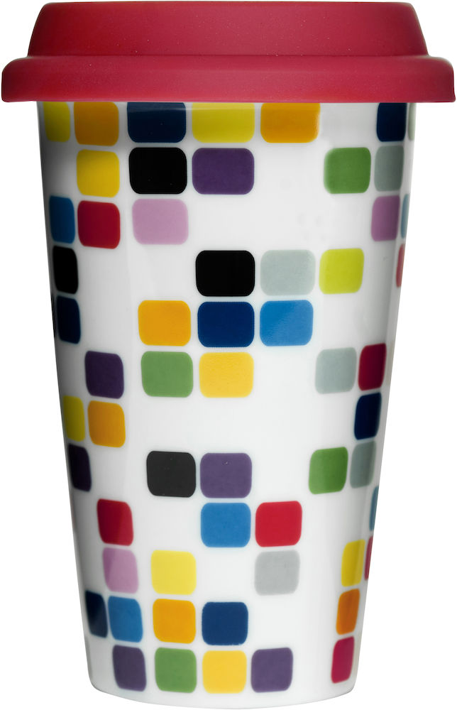 Take Away muki PIX silikonikannella Värikäs posliininen takeaway-muki silikonikannella. Ota tee tai kahvi mukaan! Kaksinkertaiset seinämät pitävät juoman kuumana, etkä polta sormiasi! Kansi... Lue lisää