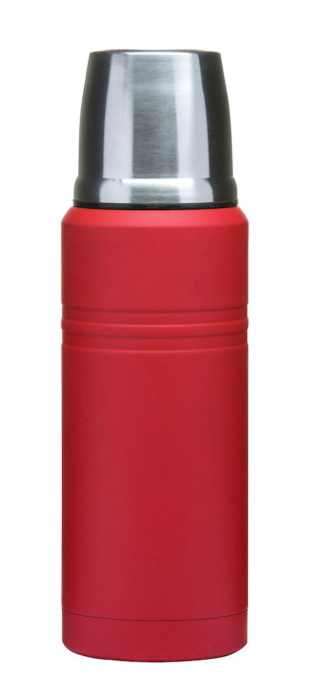 Free termos, punainen Termos, josta saa hyvän otteen ja joka pitää juomasi kuumana. Valmistettu ruostumattomasta teräksestä ja pinnoitettu kumilla.