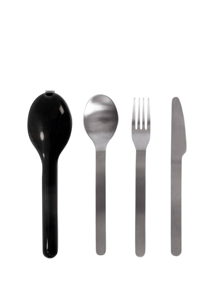 Käytännöllinen ruokailuvälinesarja ruostumattomasta teräksestä, pakattu harmaaseen muovikoteloon. Täydellinen käytettäväksi tien päällä, piknikillä ystävien kanssa tai metsässä... Lue lisää