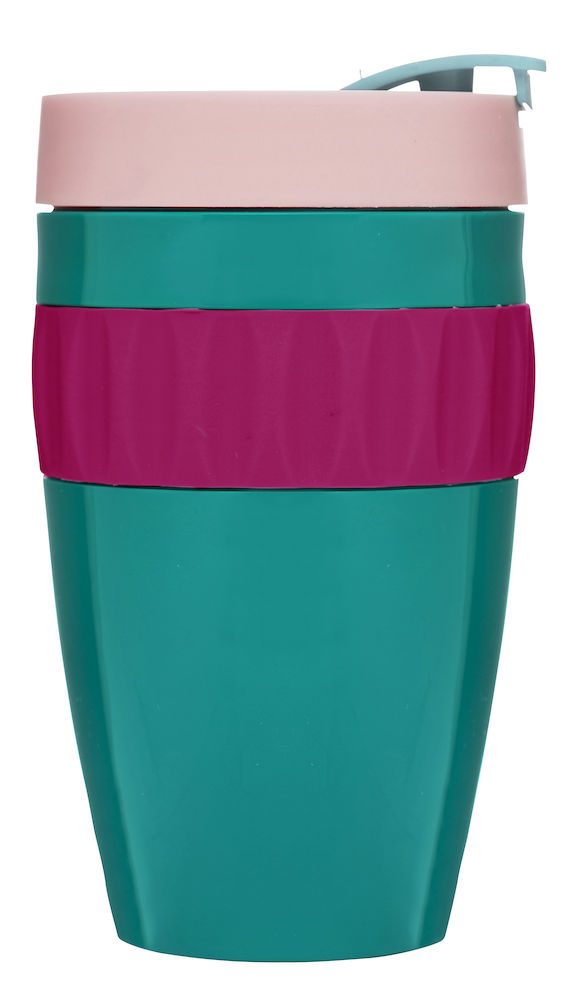 Tulevaisuuden takeaway-muki. Pitää sisällön lämpimänä 45 minuutin ajan. Kaikki osat ovat konepesun kestäviä. Materiaali: BPA vapaata Tritan-muovia.