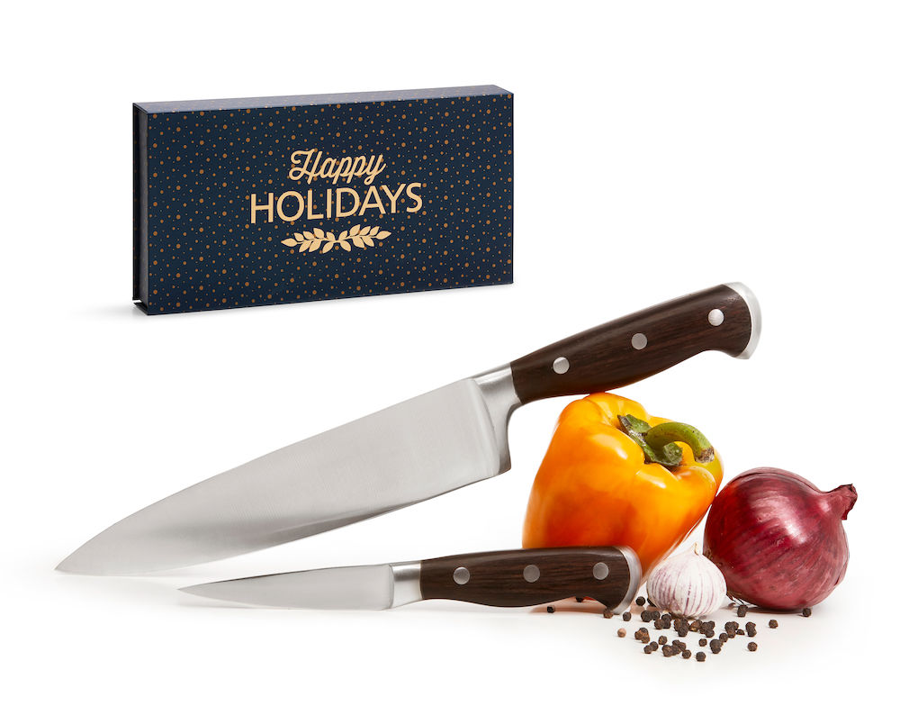 Veitsisetti wengepuusta, 2 kpl Happy Holiday Klassinen veitsisetti. Veitsissä on wenge-puusta valmistetut kahvat. Kokkiveitsi ja vihannesveitsi ovat yhdessä lahjapaketissa. Täydellinen lahja!... Lue lisää