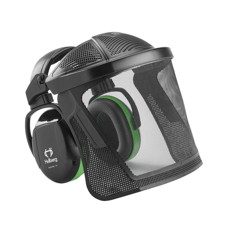 Secure 1 Headband -kuulonsuojaimen ja Safe-nailonverkkovisiirin yhdistelmä. Erinomainen käyttömukavuus ja suojaus työhön, joka vaatii kuulon- ja kasvojensuojausta, kuten ruohon ja pensaiden leikkaus. Nailonverkkovisiiri suojaa käyttäjää suurilta pölyhiukkasilta ja hankautumilta ja päästää mukavasti ilmaa visiirin läpi.