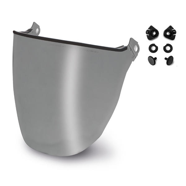 Tummennettu, kevyt kokokasvosuojain ja työkaluvapaasti käytettävät kiinnikeruuvit suojaimen kiinnittämiseksi Kask Plasma -sarjan työkypäriin. Panoraamanäkymän tarjoava malli on suunniteltu käytettäväksi myös omien silmälasien päällä.