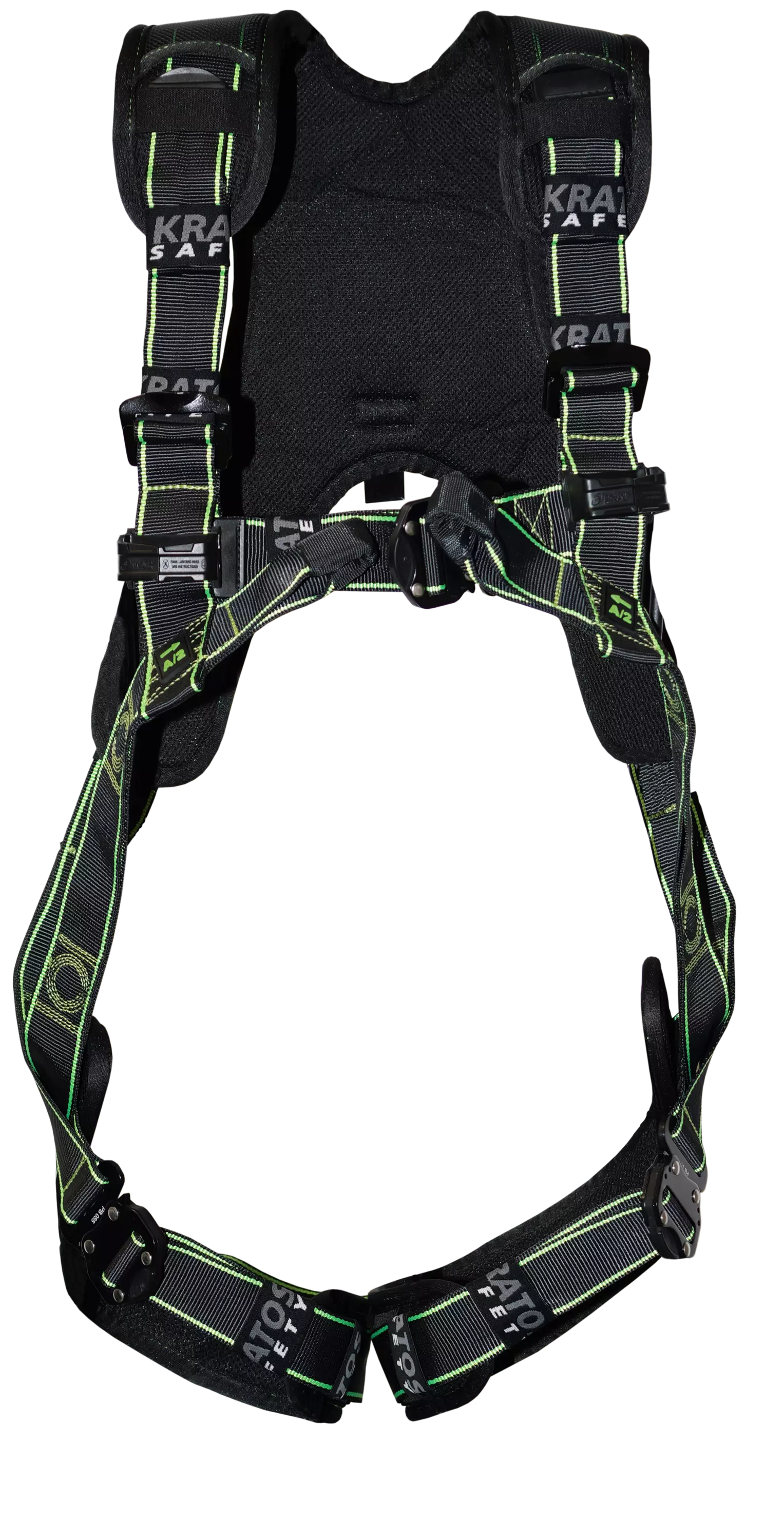 Attachment points - 2 textile loop chest attachment and 1 dorsal D-ring for fall arrest.