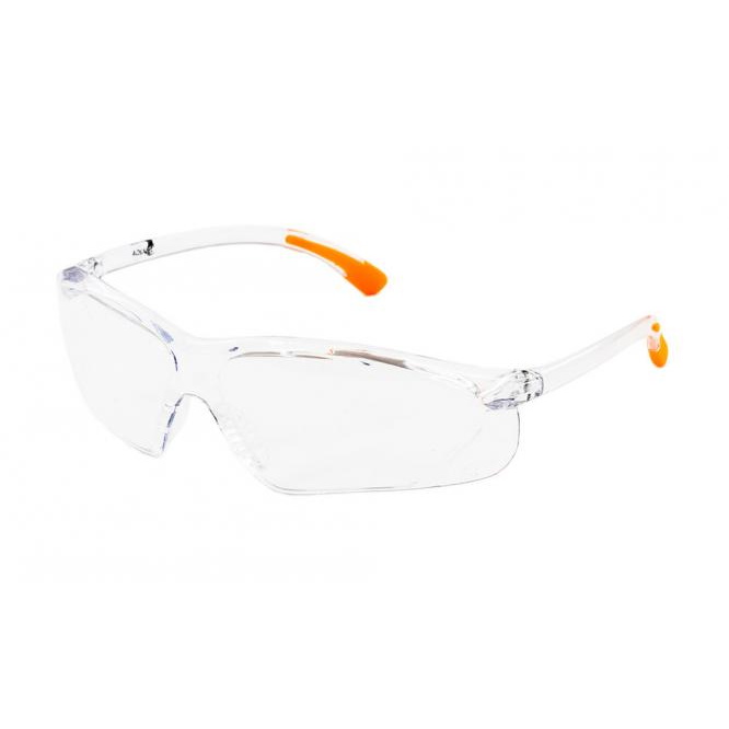 Kevyet suojalasit kirkkaalla linssillä. Liukuesteet/pehmusteet sangoissa.