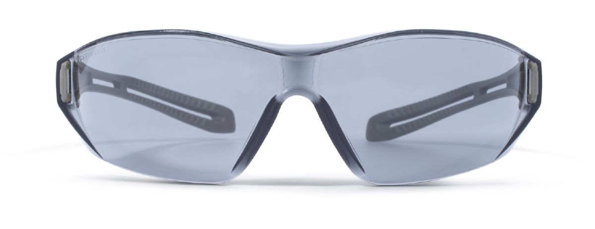 Erittäin mukava suojalasi, sangoissa kuviointi, jonka ansiosta lasit istuvat hyvin. Saranatoiminto on sisäänrakennettu sankoihin ja on kokonaan muovia. Paino 26 g.