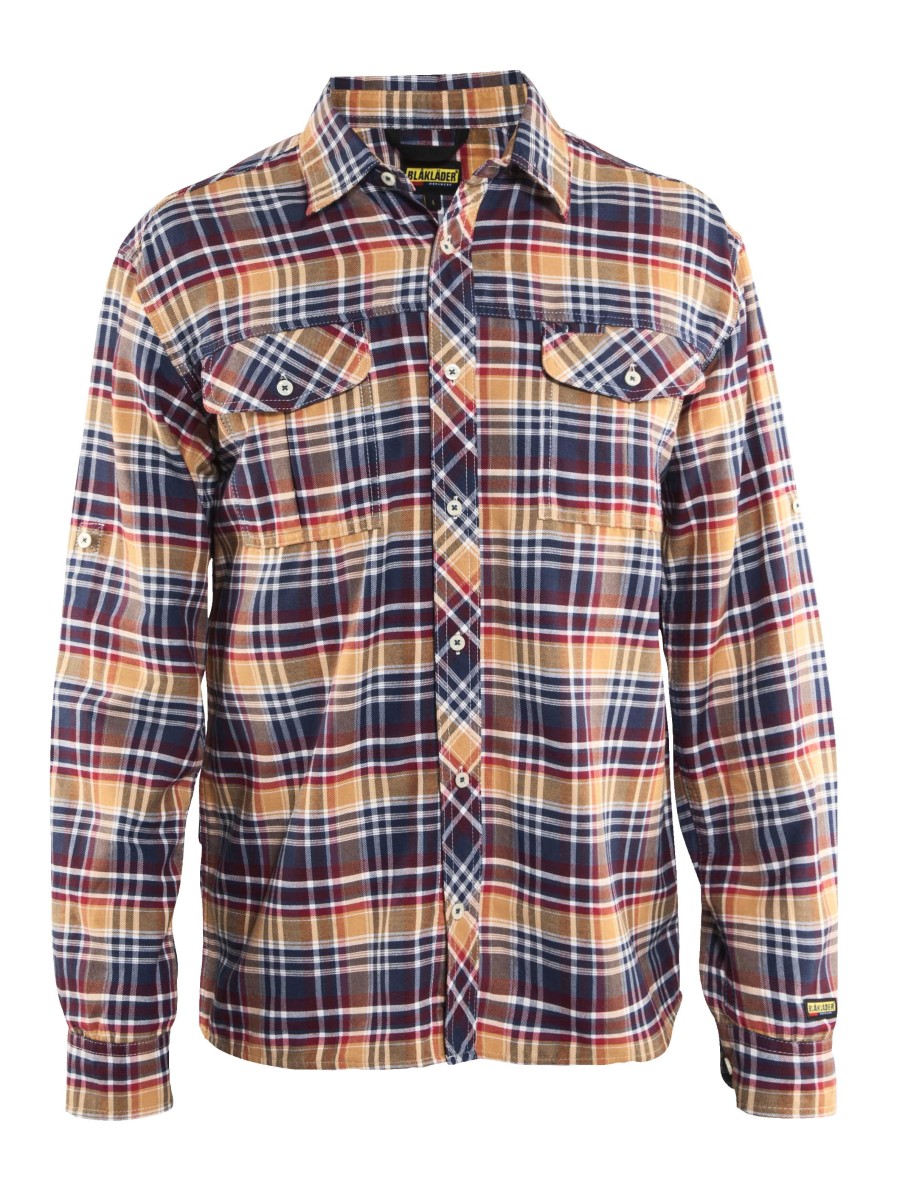 Pehmeä flanellipaita, loose fit istuvuudella. Paita on ruudullinen, pinta on harjattu sisäpuolelta ja siinä on kaksi läpällistä rintataskua, jossa vasemmalla puolella on kynälle aukko. Hihoissa on kangasnauhat, joilla hihat voidaan kääriä ylös. Niskassa olevasta lenkistä paita on helppo laittaa roikkumaan.