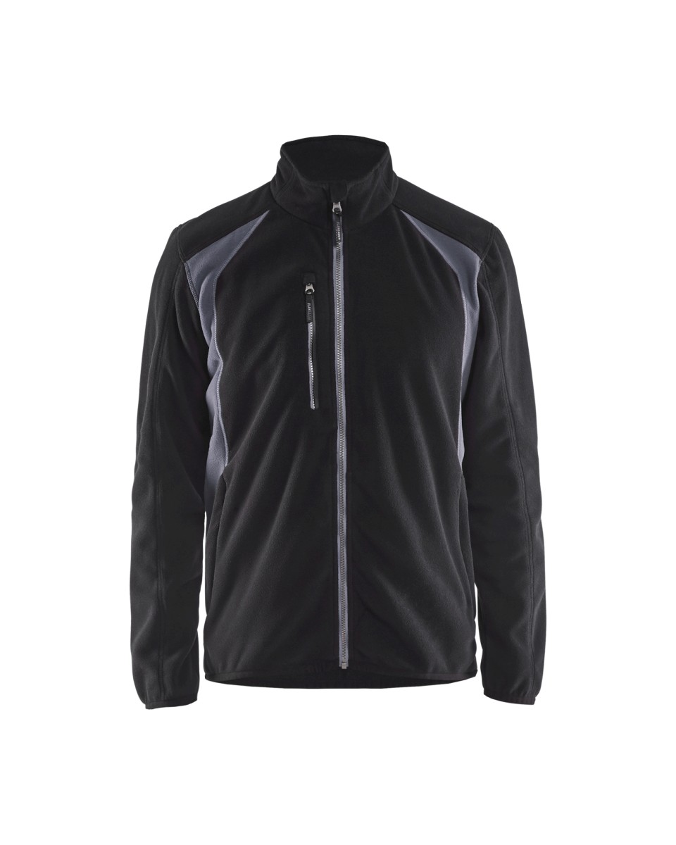 Kaksivärinen fleecepusero, jonka kangas on käsitelty nukkaantumista vastaan. Kaksi isoa vetoketjullista etutaskua, pidennetty selkäosa, heijastavat vetoketjut edessä sekä rintataskuissa.