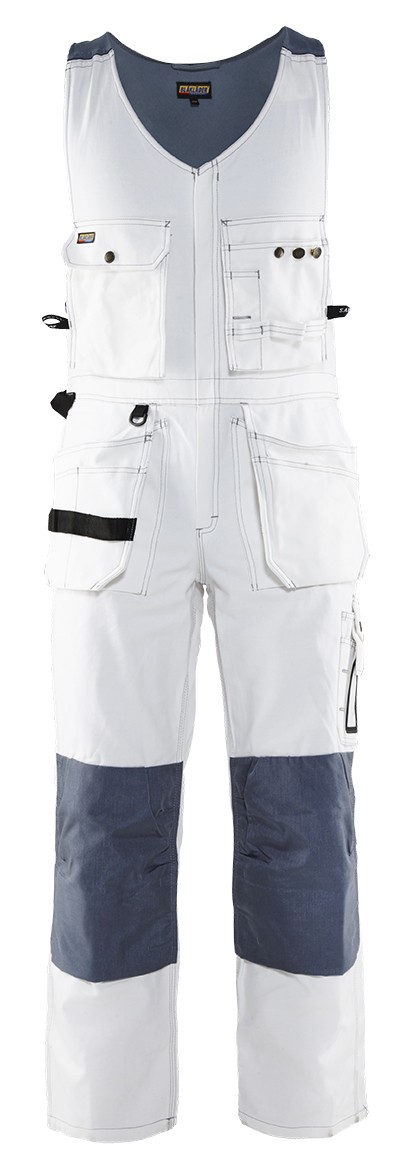 Vaikka odottaisit parasta, tulet silti hämmästymään tämän avohaalarin mukavuutta ja toimivuutta. Joustavan selkäosan ansiosta haalari ei missään vaiheessa rajoita liikkeitäsi ja kaikille työkaluille löytyy varmasti oma säilytyspaikkansa. Neljä vahvistettua riipputaskua ja pensselitasku. Palkeelliset etutaskut riipputaskujen alla. Säätömahdollisuus olkasaumoissa.