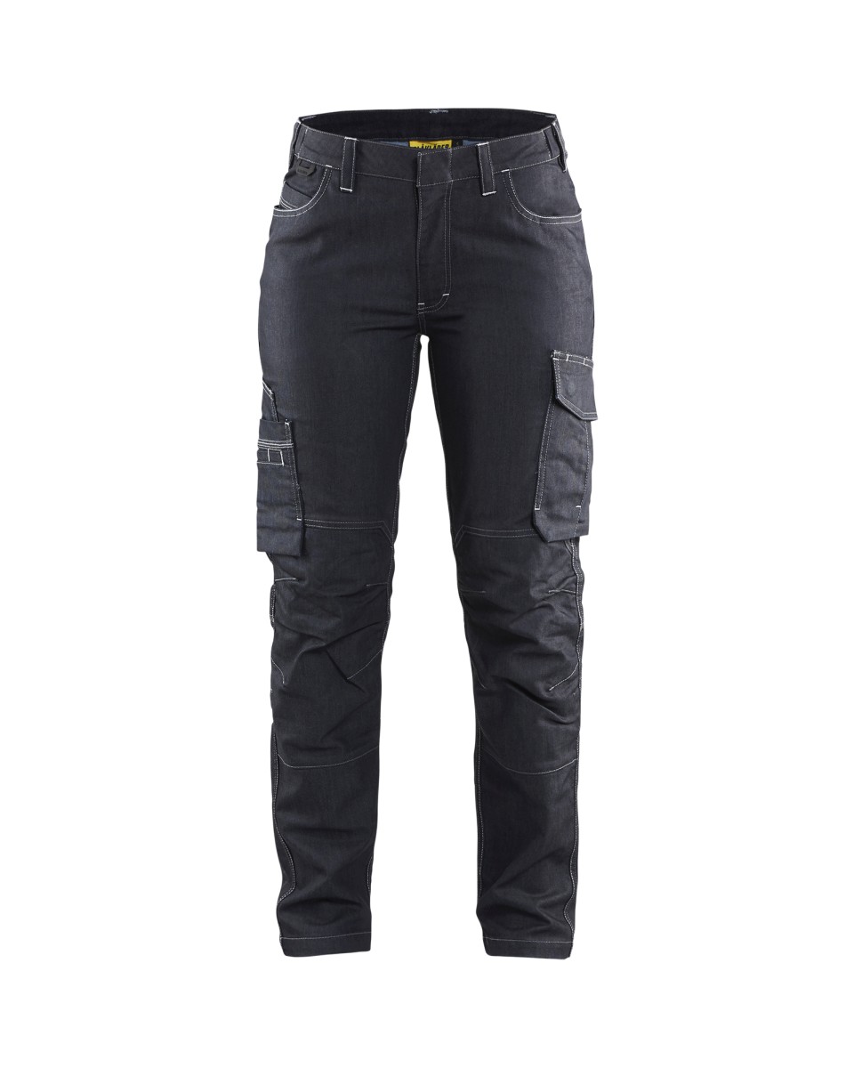 Perinteisten farkkujen tyyliset housut joustavalla CORDURA®Denim kankaalla naisille. Istuvuutta ja mukavuutta varten housuissa on joustava vyötärö sekä muotoillut lahkeet. Fiksuja yksityiskohtia kuten pienet heijastimet ja verkkokankainen puhelintasku sekä polvisuojataskut housujen sisäpuolella. Housuissa ei ole mitään naarmuttavia osia.