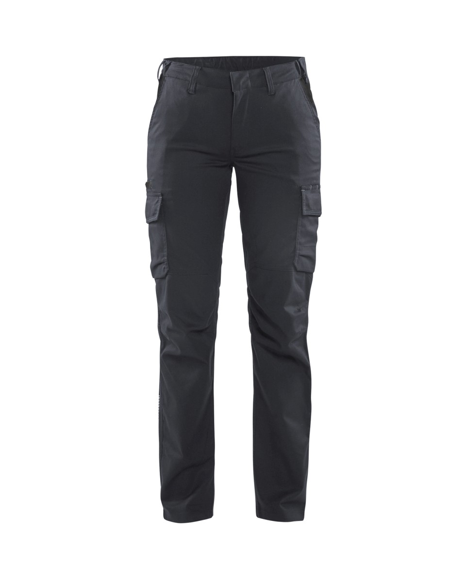 Blåkläderin uuteen teollisuusmallistoon kuuluva naisten stretch housu, joka ei naarmuta ja kestää teollisuuspesun. Kangas on kahteen suuntaan joustava ja vyötäröllä on resori, joka antaa lisämukavuutta. Mittatasku sisäpuolella ja etutaskut peitetyillä painonapeilla ja vetoketjullisella sisätaskulla tekevät housusta turvallisen vaihtoehdon, kun työskennellään herkästi naarmuuntuvien pintojen kanssa. Heijastavat yksityiskohdat lisäävät näkyvyyttä.
