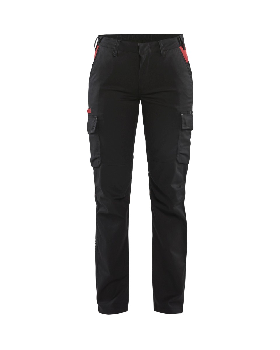 Blåkläderin uuteen teollisuusmallistoon kuuluva naisten stretch housu, joka ei naarmuta ja kestää teollisuuspesun. Kangas on kahteen suuntaan joustava ja vyötäröllä on resori, joka antaa lisämukavuutta. Mittatasku sisäpuolella ja etutaskut peitetyillä painonapeilla ja vetoketjullisella sisätaskulla tekevät housusta turvallisen vaihtoehdon, kun työskennellään herkästi naarmuuntuvien pintojen kanssa. Heijastavat yksityiskohdat lisäävät näkyvyyttä.