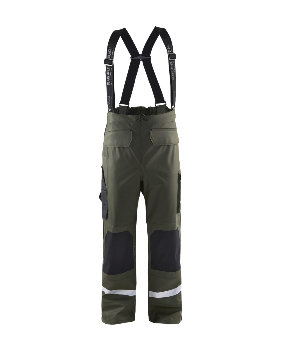 Sadehousut työtehtäviin, jotka vaativat kestäviä, mutta myös liikkumisen mahdollistavia sadevaatteita. Tuulen- ja vedenpitävä, liimatut saumat. Hyvä istuvuus, leveä joustava resori vyötärössä takana, säädettävät ja irrotettavat joustavat henkselit ja säädettävät lahkeensuut napeilla. Helppokäyttöiset taskut, kuten palkeellinen reisitasku läpällä, mittatasku lisätaskulla ja puukonpidike sekä läpän alla aukot, joista riipputaskut on mahdollista saada esiin. Housut on vahvistettu polvista ja lahkeensuiden takaosasta. Sertifioitu EN 343 (suojaus sateelta).