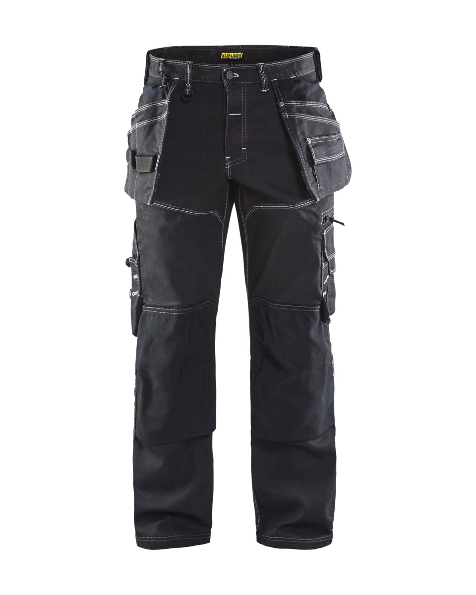 Modernit ja erittäin toiminnalliset riipputaskuhousut CORDURA®Denim kankaalla, joka on myös joustavaa. Perinteinen istuvuus, muotoillut lahkeet sekä kiristysnauhat lahkeensuussa. Riipputaskut ovat extraleveät ja niissä on taskuja sekä työkalulenkkejä. Ne on myös CORDURA®1000 vahvistetut kuten on myös takataskut, reisitaskut, mittatasku, polvisuojataskut ja lahkeensuut. Tämä tekee housusun todella kestäväksi, joten se sopii hyvin rankkoihinkin töihin.