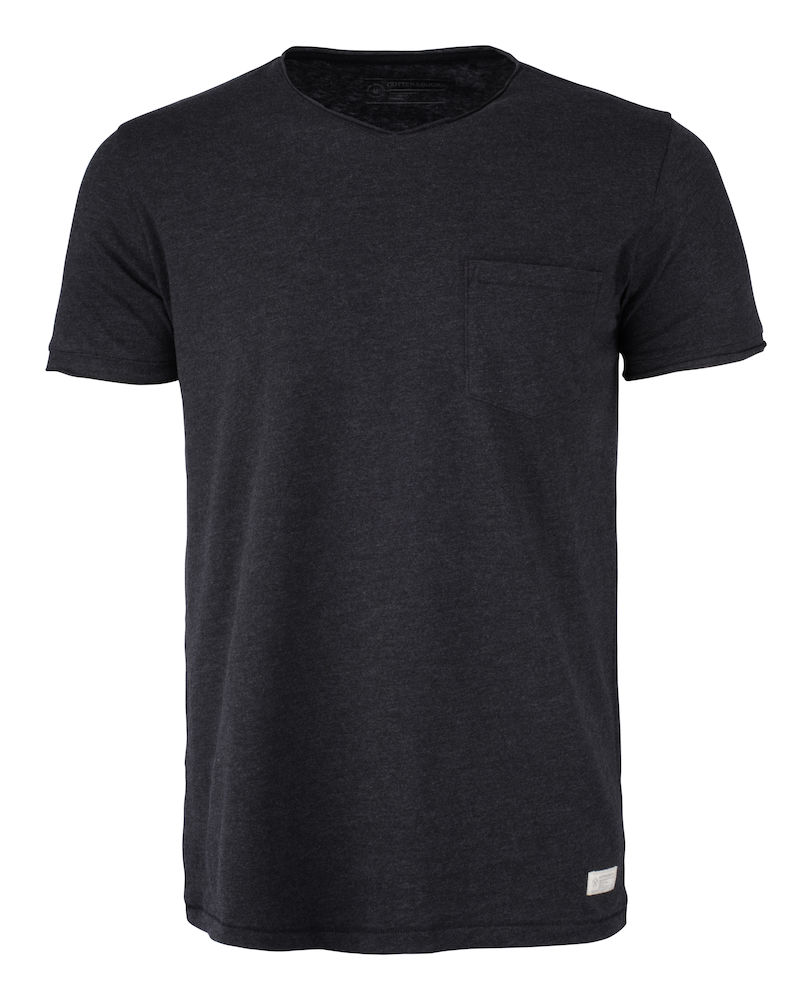 Rento ja mukava meleerattu indigovärjätty t-paita. Moderni leikkaus ja hieman tavallista leveämpi kaula-aukko. Single jersey -neulosta, joka on pesty erityisen pehmeän tunnun aikaansaamiseksi. Meleeratun denimsinisen t-paidan etupuolella on painettu C&B-logo. Meleeratun tummanharmaan t-paidan etupuolelle on jätetty tilaa asiakkaan omalle logolle.