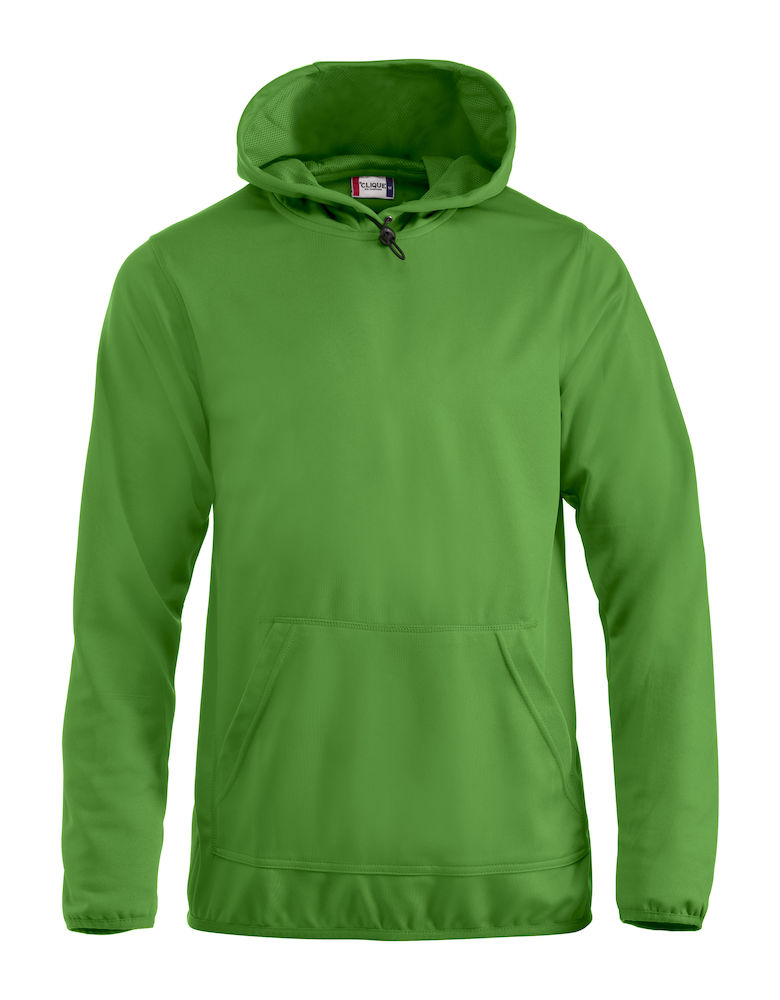 Toiminnallinen ja urheilullinen huppari etutaskulla. Verkkovuori, joustavat resorit helmassa ja hihoissa. Flatlock-tikkaukset.