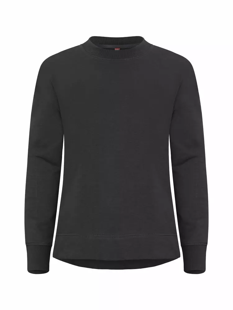 Rento naisten collegepaita puuvillan ja kierrätetyn polyesterin sekoituksesta. French Terry neulosta. Hieman pudotetut olkapäät ja halkiot sivusaumoissa. Joustava resori niskassa, helmassa ja hihansuissa. Kontrastivärinen niskanauha ja helposti irrotettava niskalappu, joka voidaan tarvittaessa vaihtaa. Pehmeä stabilisoitu kangas, joten paitaa voidaan pestä paljon ilman että se nyppyyntyy.