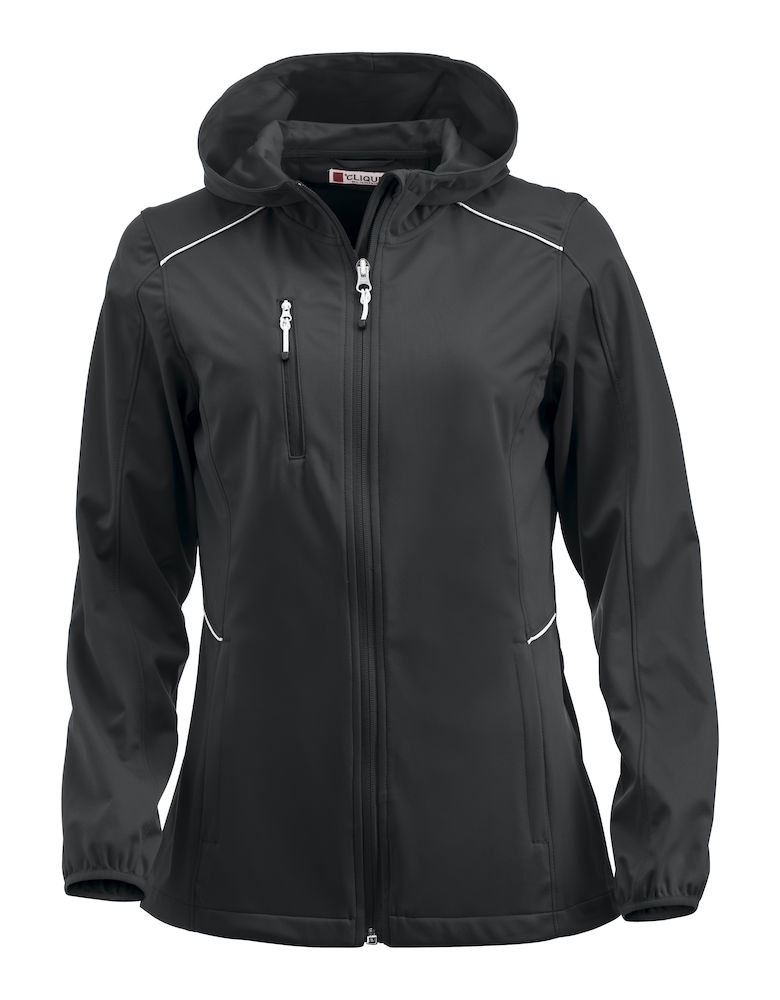 Naisten urheilullinen, kevyt ja joustava softshell-takki. Vetoketjulliset sivutaskut ja rintatasku, heijastavat tereet.