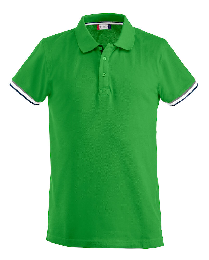 Miellyttävä ja muodikas unisex-puuvillapikee. Koristeena kolmivärinen kontrastiraidoitus.