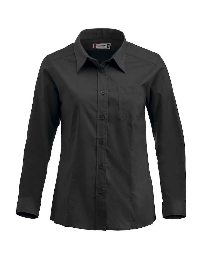Naisten pitkähihainen stretch-popliinipaita, jonka hihansuissa on extra pitkät halkiot kolmella napilla. Paidassa on kaarrokkeet edessä ja takana sekä yksi tasku.