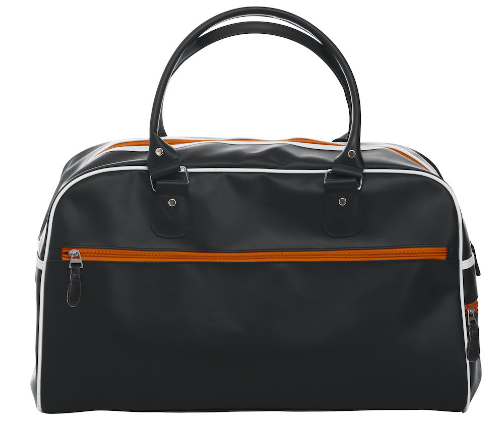 Trendikäs kolmivärinen, tereillä viimeistelty weekend-laukku. Vetoketjutaskut edessä ja sivulla. Koko: 49x30x24 cm, 32 l